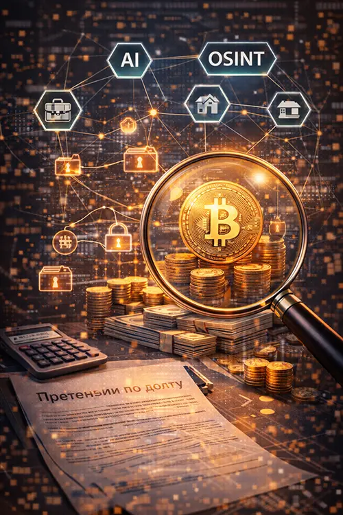 Решение: Мы использовали OSINT для анализа блокчейн-транзакций и AI для выявления скрытых средств. Система позволила проследить криптовалютные переводы, определить их источники и связать с юридическими лицами, связанными с должником.